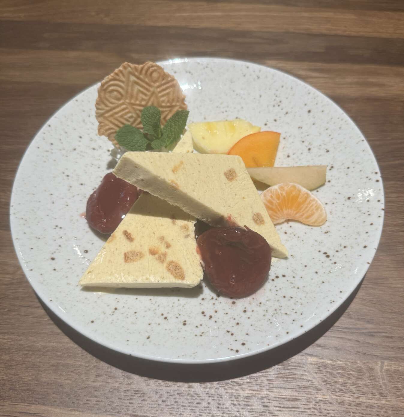 Unser Genusstipp im Dezember: Ein winterlicher Genussmoment - Luftiges Lebkuchen-Parfait mit feiner Würze und zarter Süsse, perfekt ergänzt durch fruchtig-frisches Zwetschgenkompott.