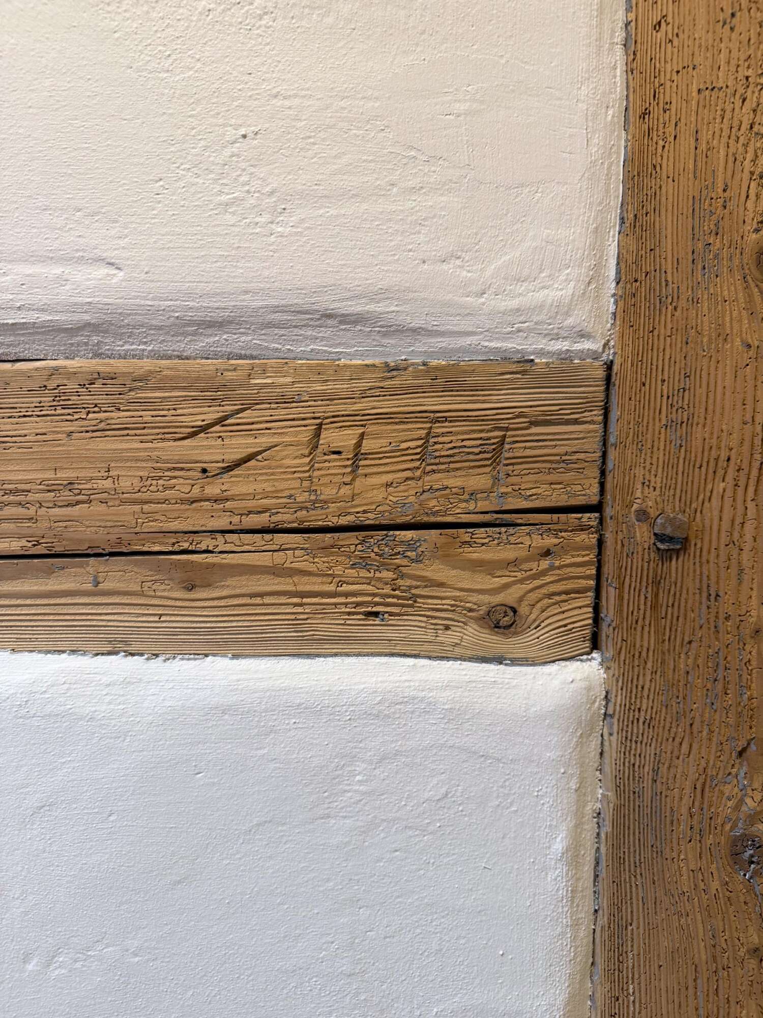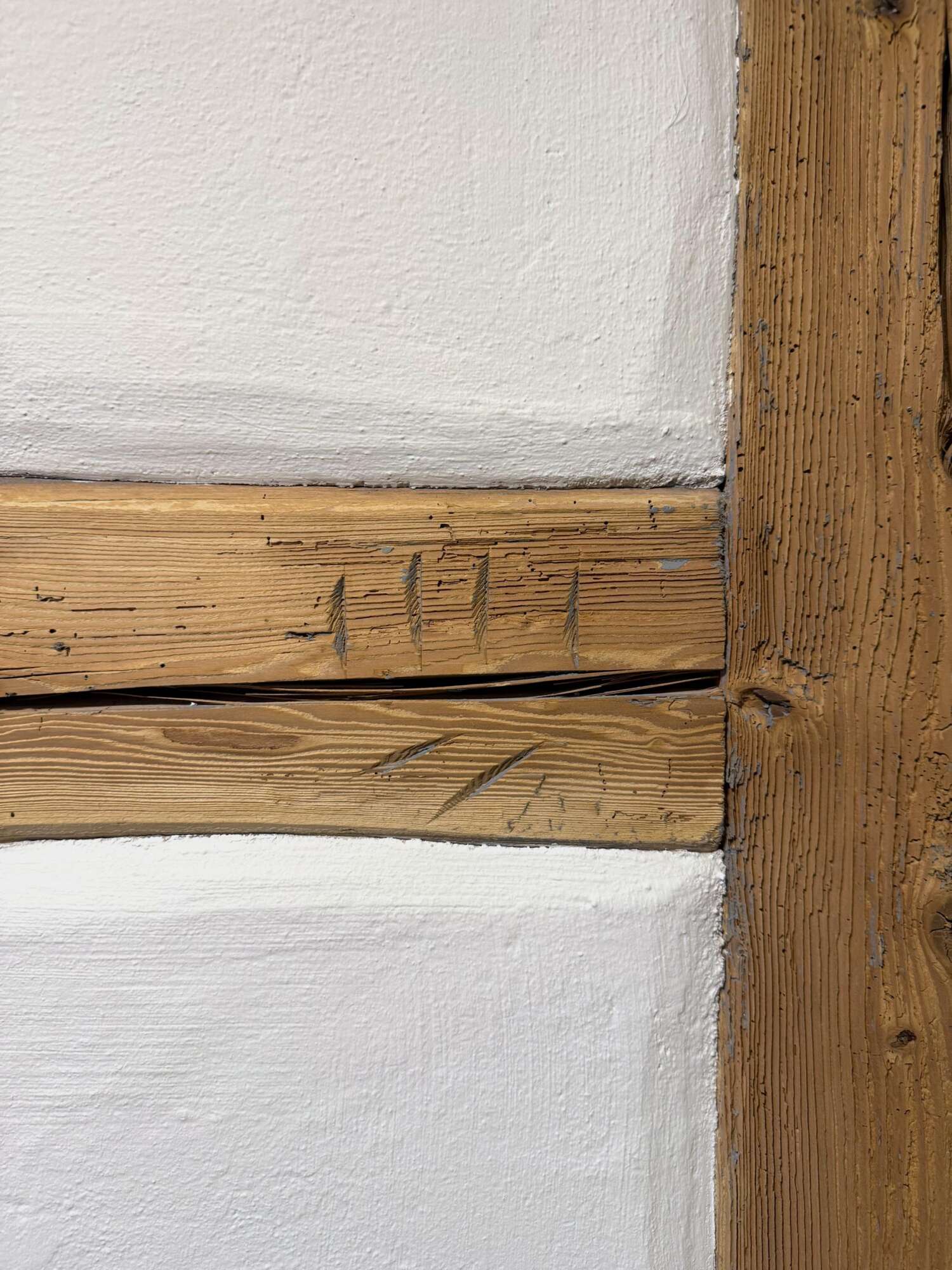 Baumaterial war früher teuer und nur mit erheblichem Aufwand und viel Personal zu beschaffen. Das vom Zimmermann eingeschlagene Abbundzeichen stammt vom Aufbau der Holzkonstruktion. Am Bau beteiligte Handwerksberufe waren Zimmermann, Schreiner, Maurer, Hafner für die Kachelöfen, Schlosser und Maler.